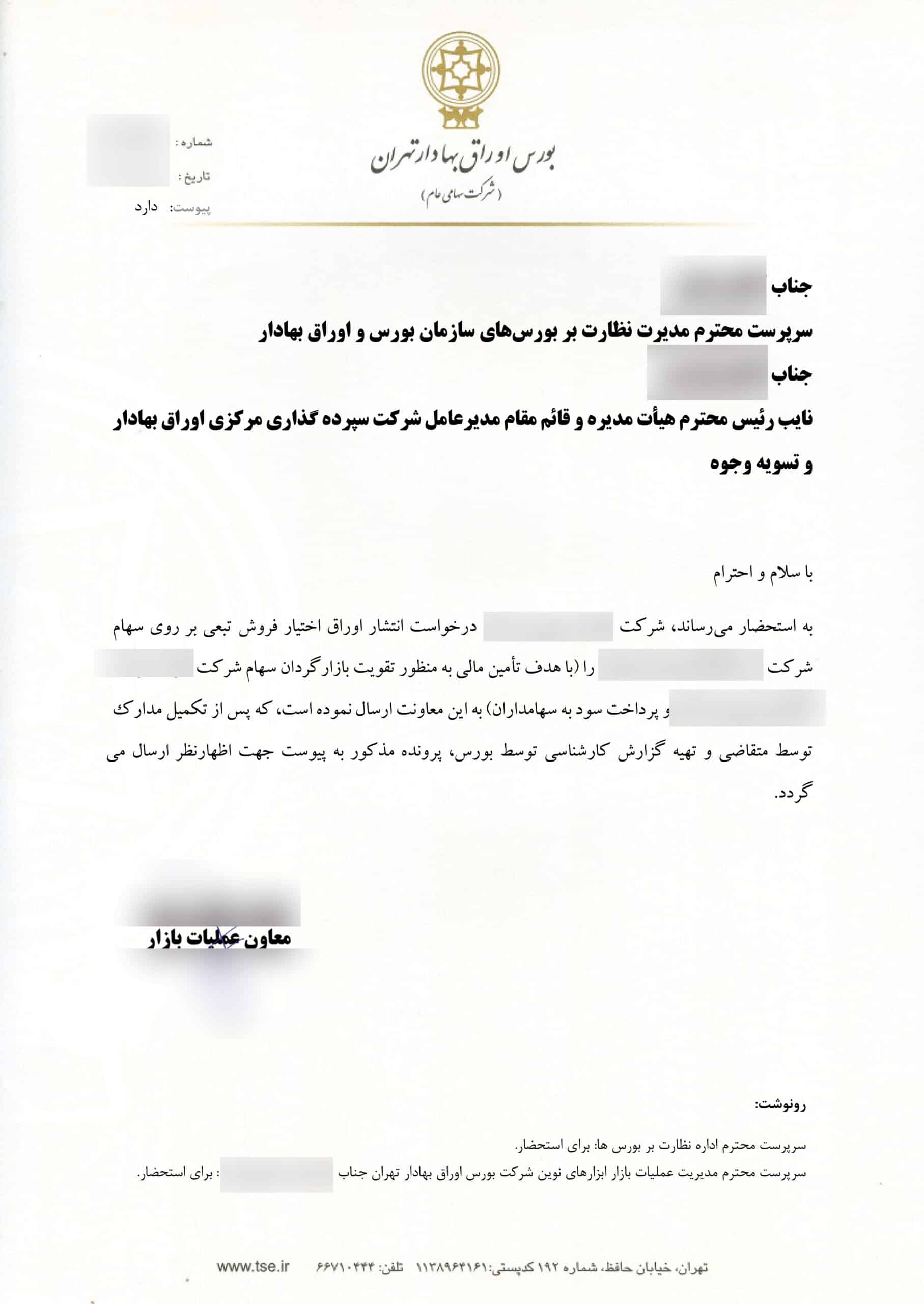 چک لیست انتشاراوراق اختیار فروش تبعی در بورس تهران