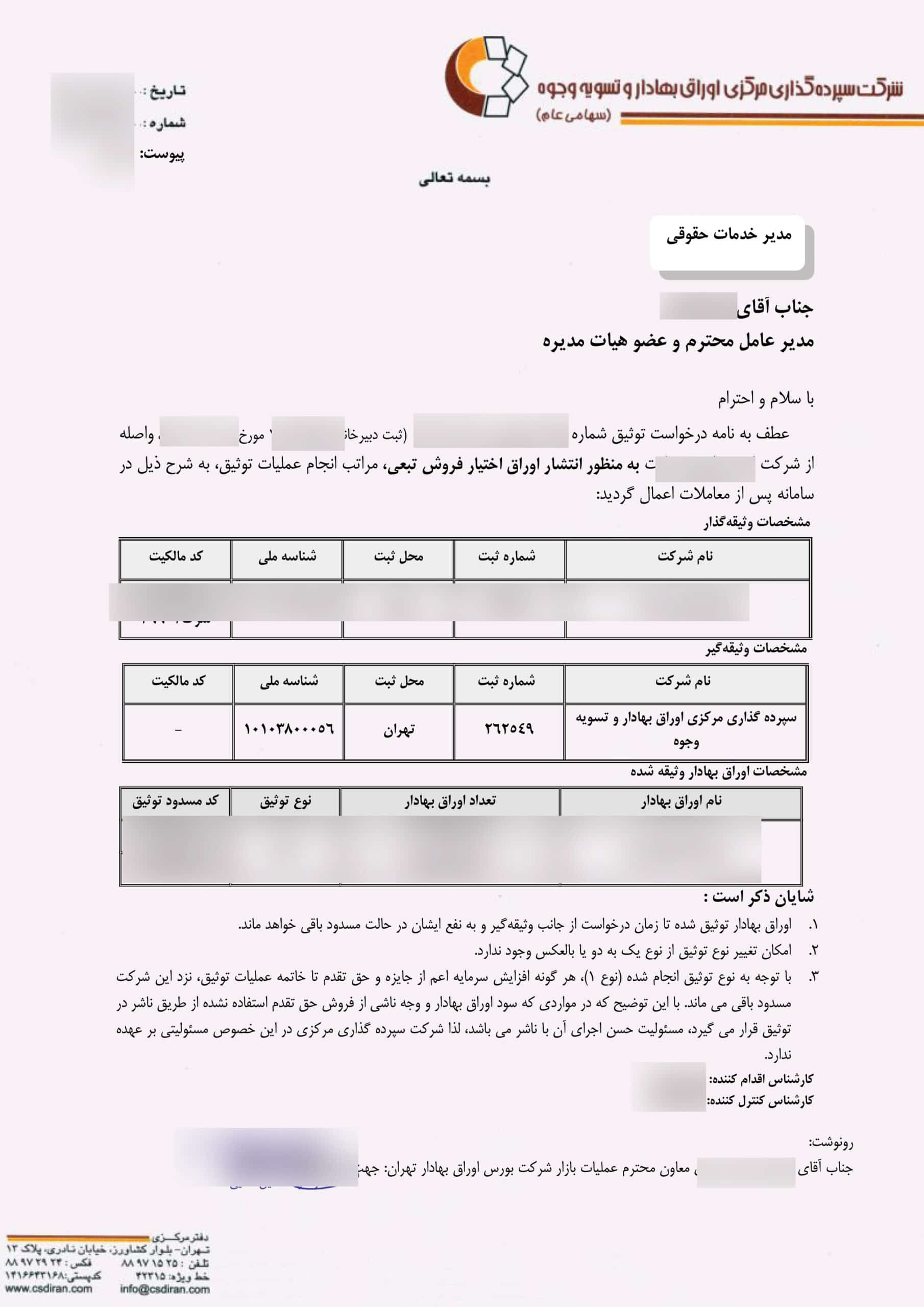 فرم ها و قراردادهایاوراق اختیار فروش تبعی در بورس تهران