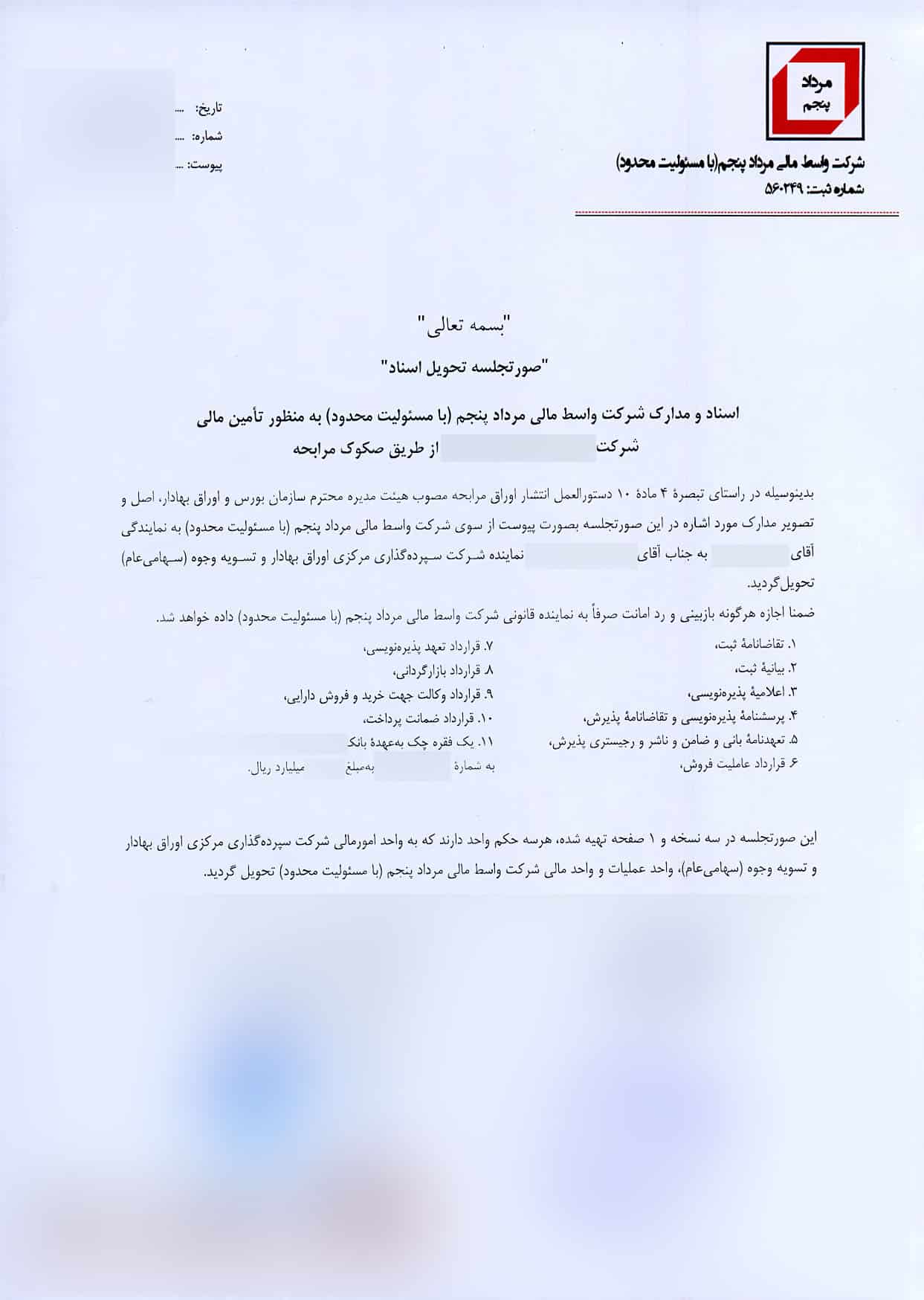فرم ها و قراردادهایصکوک مرابحه خرید سهام با ضامن ثالث