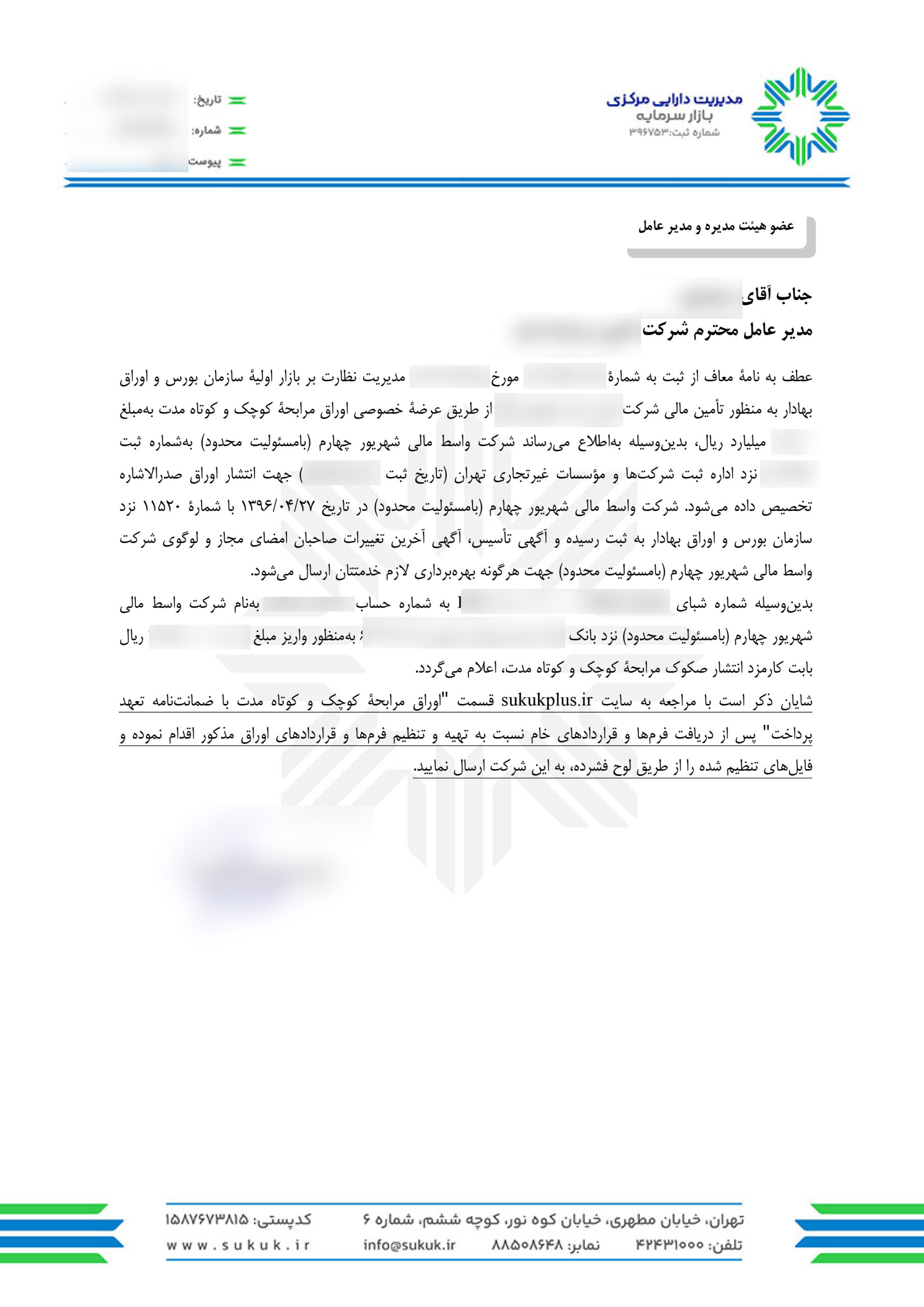 | 1.111 | عامل فروش (در صورت وجود) | https://www.sukukplus.ir/wp-content/uploads/2025/01/قبولی-سمت-عاملیت-فروش-scaled.jpg |